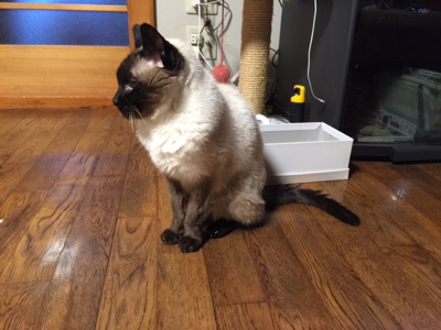 (写真は今日のサンデイ。最近ふにゃふにゃしているが、座り姿がまだなかなかハンサムである。)